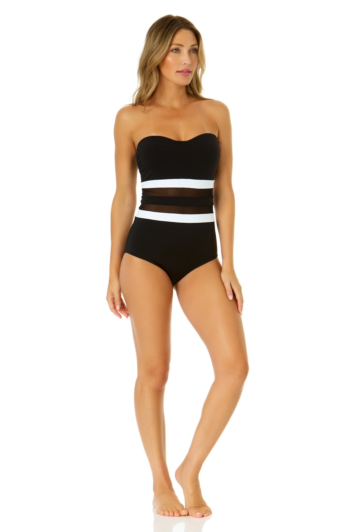 Add a touch of glamour to your summer wardrobe with our Mesh Strapless One Piece Swimsuit. This eye-catching mesh swimsuit is designed with a strapless cut and comes with removable straps to give you two looks to choose from. Elegant mesh detail at the waist will give you an outstanding look for your pool party. No matter where you go this summer, you'll be lounging in all-day glamour and comfort under the sun.